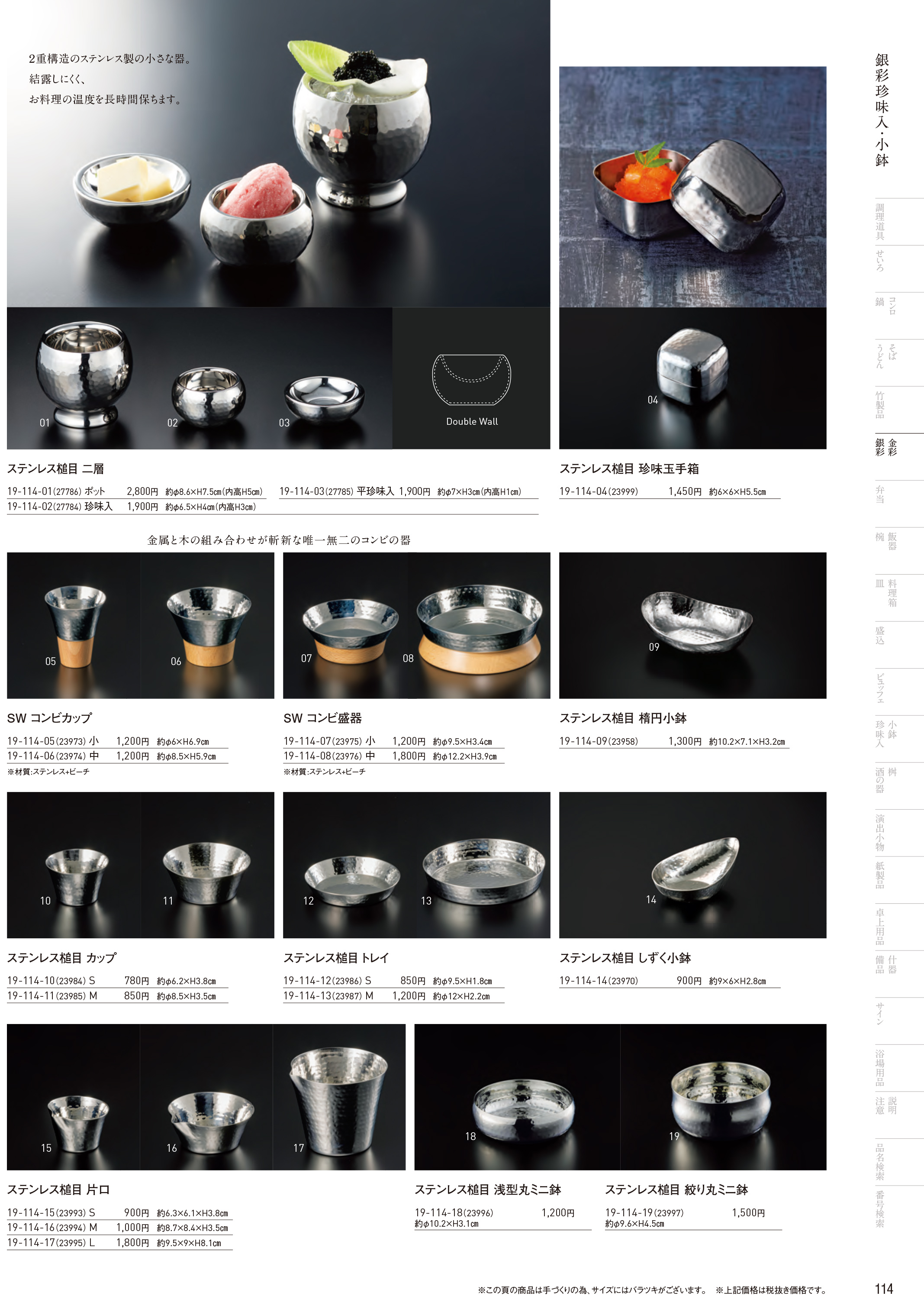 ステンレス槌目 楕円小鉢 (W23958)は、用美カタログ Vol.18 P.114に掲載されています