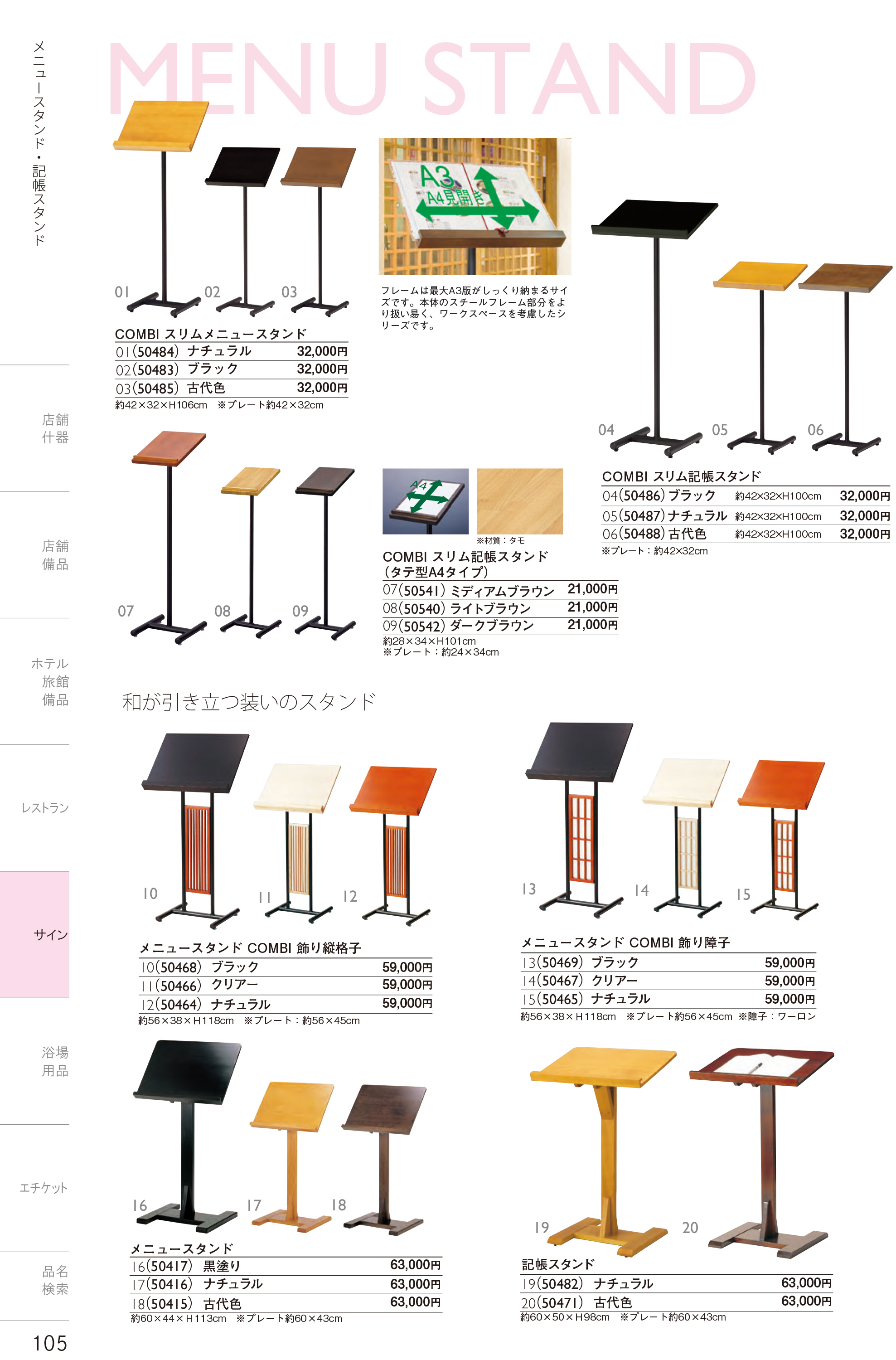 COMBIスリム記帳スタンド 古代色(W50488)は、しつらいの栞 vol.4 カタログ P.105に掲載されています