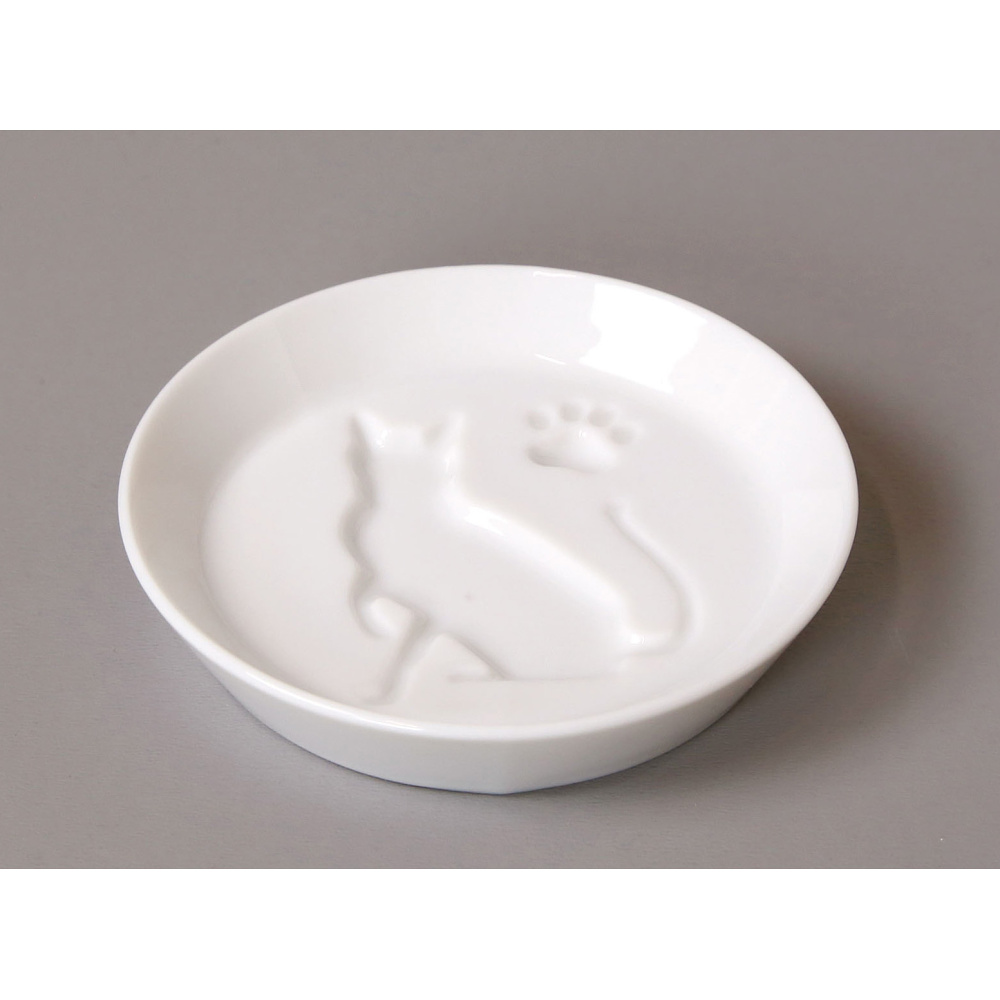 白磁・絵柄入醤油皿 ねこ(W26233)