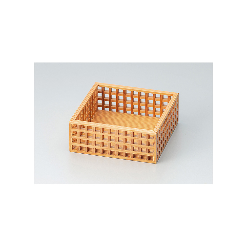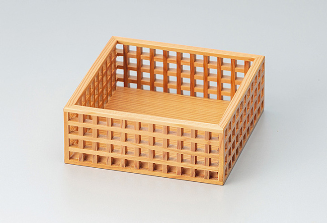 熟練した匠でしか組めない芸術品とも言える格子組の技と厳選された秋田杉の柾目が作り出す、至極の逸品内寸約10×10×H3.8cm