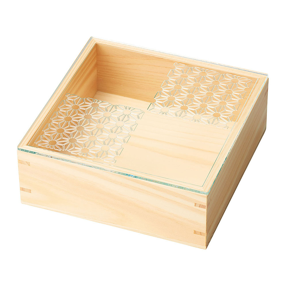 細密・正角料理箱(ガラス蓋仕様) 麻の葉 (W28034)