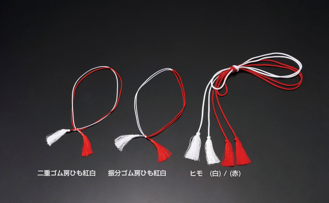 重箱用二重ゴム房ひも(100本入) 紅白40cm(W25920)は、用美カタログ Vol.18 P.302に掲載されています