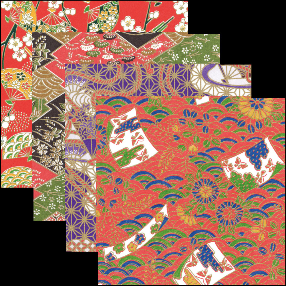 友禅千代紙 (100枚入)(各25枚x4柄) 5寸(W66523)