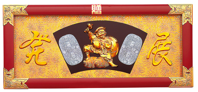 縁起祝額30号横型(白木)金具付 俵大黒(朱塗)(W43361)