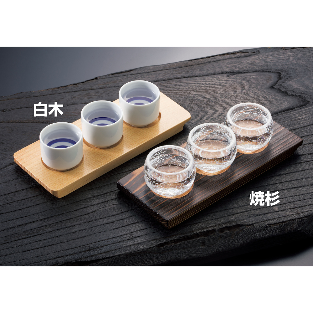 利き酒トレイ3穴 白木(W16229)