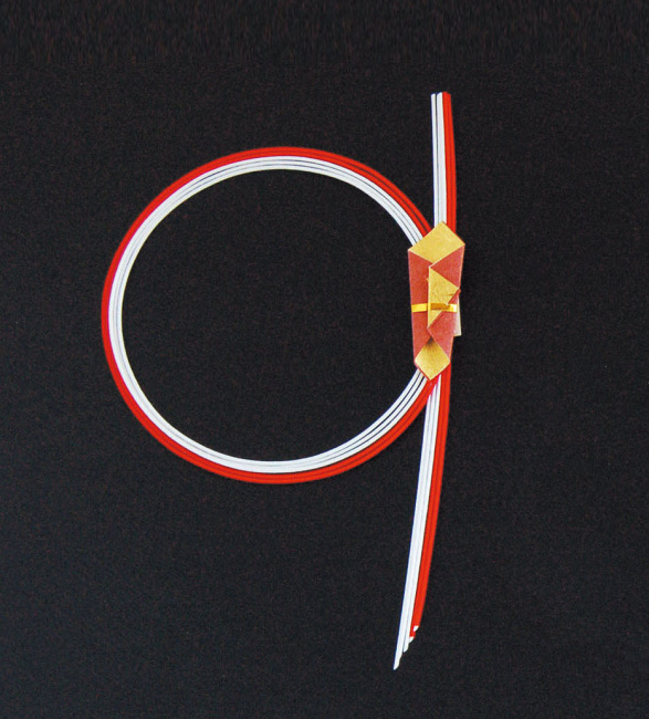 水引重箱飾り・紅白輪のし 朱 (W26033)